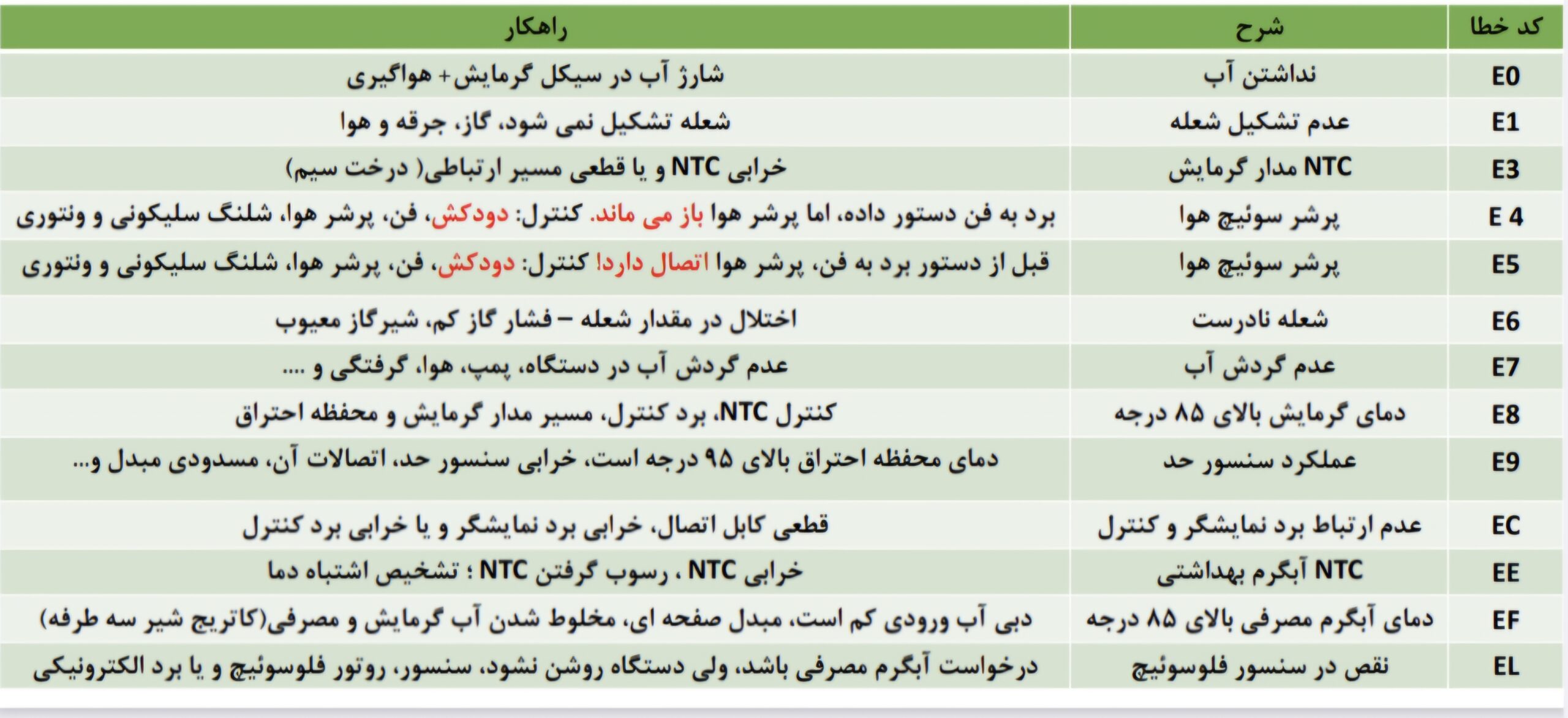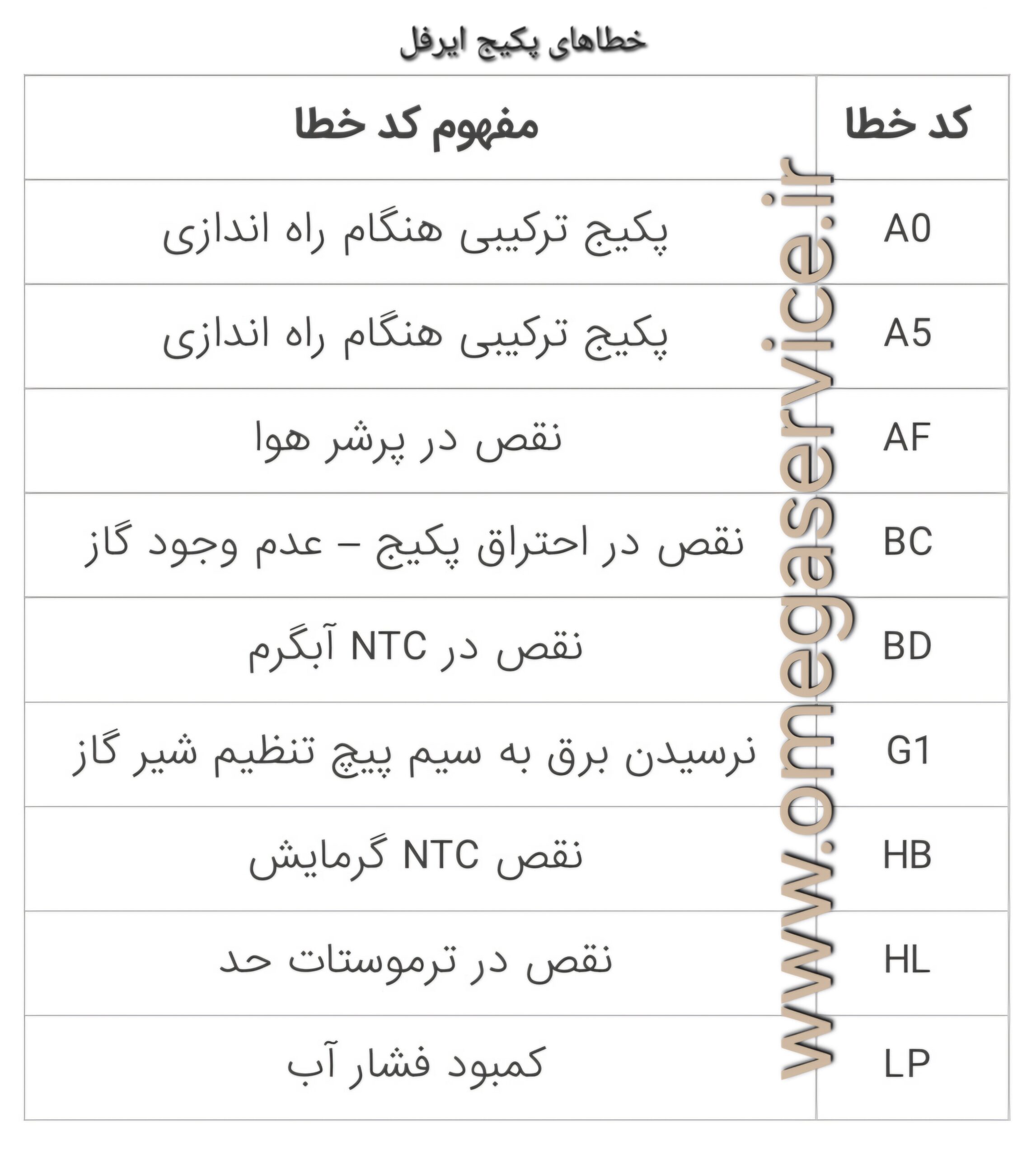 جهت عیب یابی سریع و آسان در تعميرات انواع پکیج به ارورهای دستگاه پکیج نیاز است.
