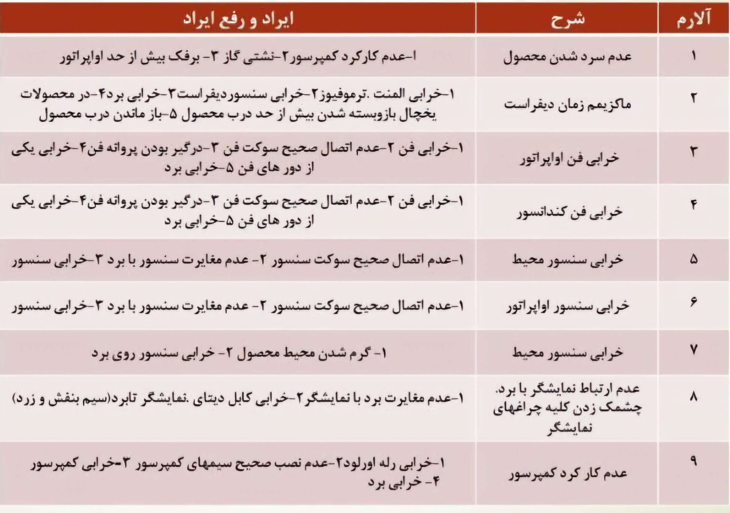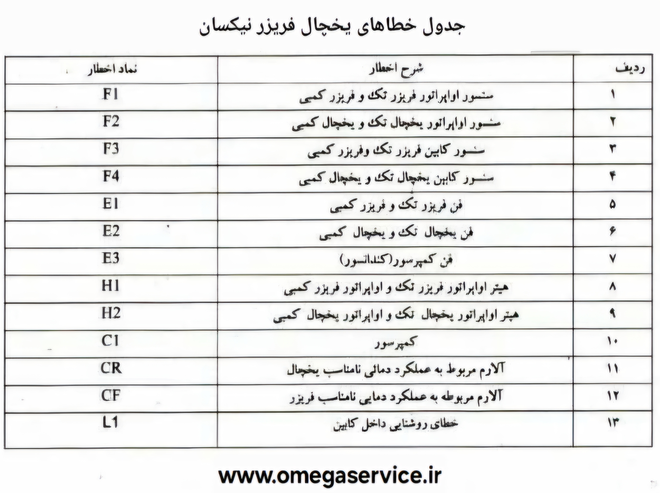 تعمیر یخچال فریزر نیکسان در تبریز ۰۹۱۴۱۱۰۸۴۰۹ جدول خطاهای یخچال فریزر نیکسان