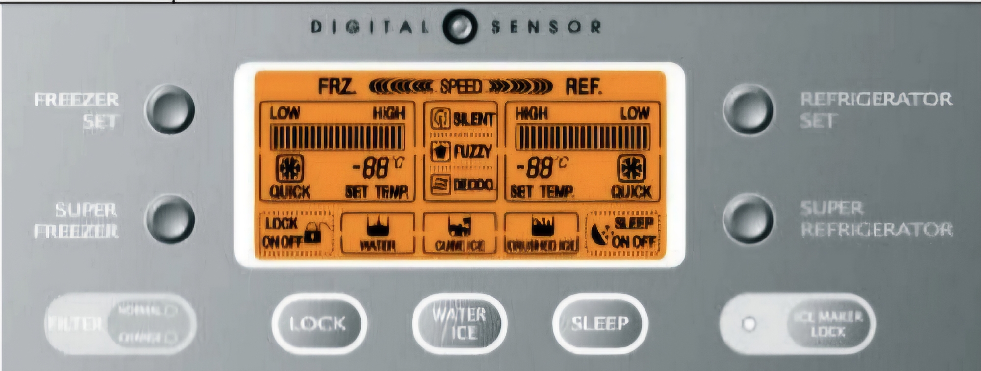 در حالت استندباي سگمنت هاي دماي یخچال و فریزر خاموش و آیکون هاي فعال، روشن باقی می مانند.