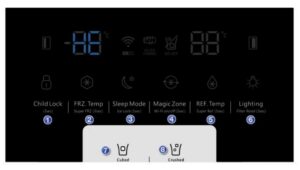 ۴. برای تست سنسور یخچال (فریزر ) کلید Child lock را فشار میدهیم در برد دیجیتال در قسمت دما دمای مشاهده شده توسط سنسور داخل یخچال (فریزر )نشان داده میشود. واضح است است که این دما با دمای محیط داخلی مطابقت نماید.که صحت عملکرد سنسور را نشان می دهد.