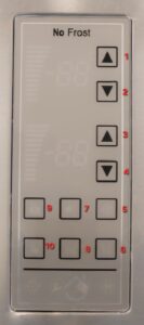 برای تنظیم دمای قسمت فریزر کلور با فشردن کلید ۳ و ۴ دما روی نمایشگر به صورت چشمک زن در آمده و با هر بار لمس کردن دما از منفی ۱۴ تا منفی ۲۴ درجه سانتیگراد قابل تنظیم است.